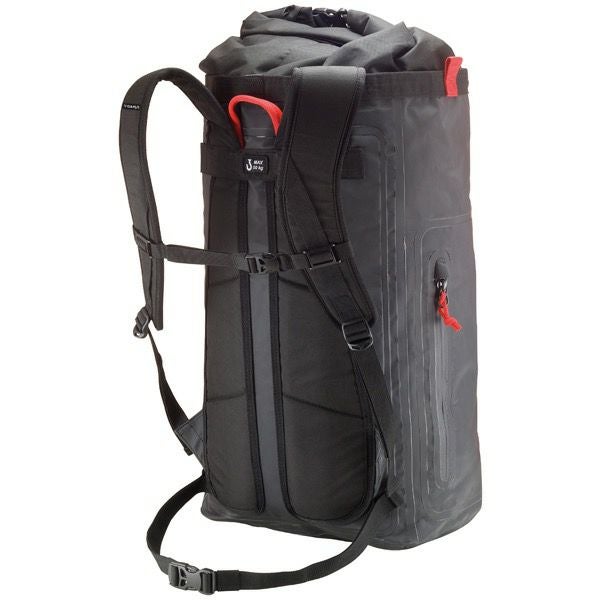ターポリンPVC 500Dの高強度ロールトップバックパック。サイズが30、45、60リットルの3サイズから選べます。輸送用のラベルポケットがあり、内部にジップポケット・ギアループ・ロープエンドを結ぶループが付いています。荷揚げ用のハンドルは50kgの荷重に耐えられます。