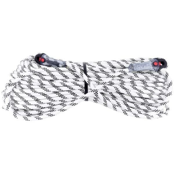 両端に22kNのステッチが施された固定ループを取り付けたそれぞれの長さのイリジウム10.5mmセミスタティックロープ。ロープループとステッチのプロテクトシステムは、信じられないほどコンパクトで頑丈です。ループには カラビナの回転防止用ゴムが付けられています。ループ付きロープのメリットは、ノットによる強度低下が無いこと(ループの強度は22kN)、ノット作成ミスによるトラブルが発生しないこと、作業時間短縮などが挙げられます。