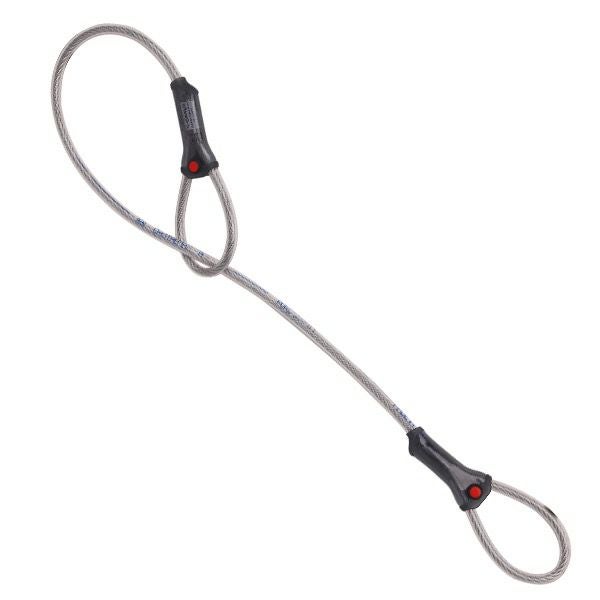 保護用プラスチックチューブカバー (直径10 mm) 付きの亜鉛メッキ炭素鋼製。2つの大きなループには同じサイズの開口部があり、簡単に取り付けたりクリップしたりできます。ループは強力なアルミのカシメで閉じられており、薄型で検品しやすい独自の透明保護シースが特徴です。ループは互いに簡単に通すことができ、複数の設置の仕方をを可能にします。