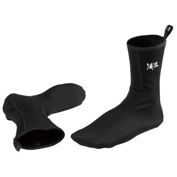薄手の発泡ラバー素材を採用した、わずかなフットホールドの足場を感じ取りやすいソックスです。2019年モデルより左足用・右足用の3D構造へとアップグレードしました。3mm厚の「渓流_CRソックス3mm」に比べて保温性・保護力は低下するため、状況に応じた使い分けをおすすめします。