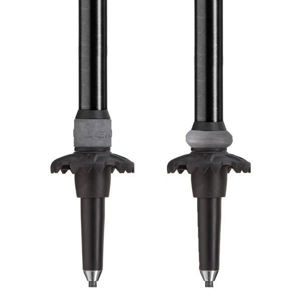 ワンタッチ動作でスピーディにロックの解放、固定が可能。テコの原理で親指の力だけで操作できるため、簡単にポールの長さ調整ができるLEKI独自のロックシステムです。