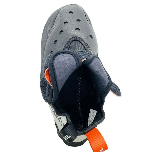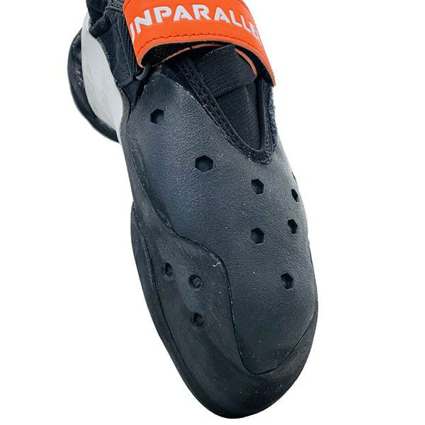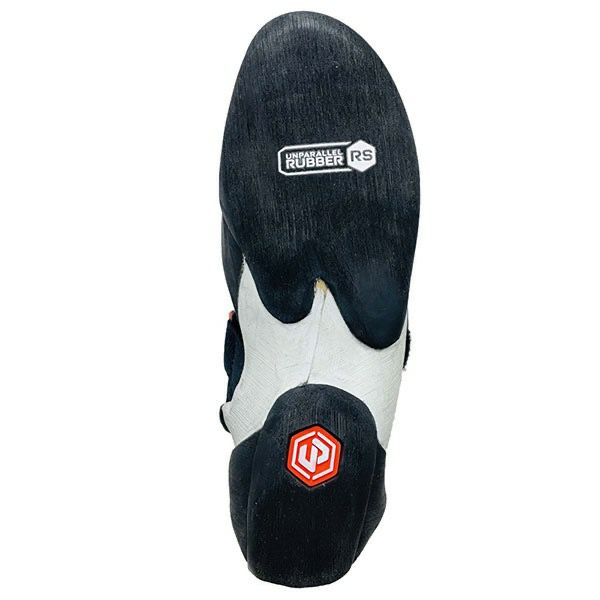 ・2ピースアウトソールの前足部にフィッシュフックミッドソールと組合わせてRS3.5mmラバーを配置。足指でフットホールドを掴むようなダイレクト感と、シビアなスメアリングで異次元のフリクションを発揮 ・前足部アウトソールのインサイド側を延長し、インサイド側のスメアリング対応性能を向上