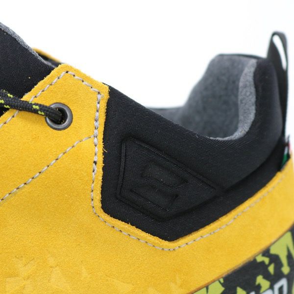 アッパーはスエードレザーを採用、岩などとの耐摩耗性を向上させるためにランドラバーで保護しています。