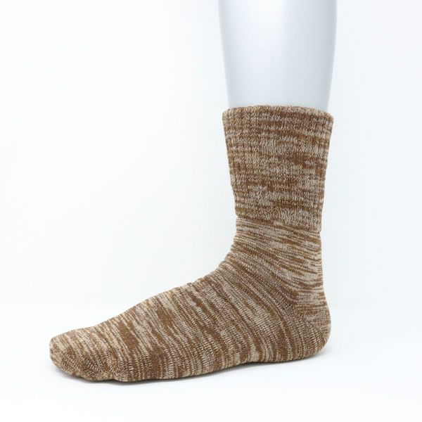 杢調のモダンなデザインに仕立て、裏は総パイル編みでクッション性があり、足首から履き口までをパイル編みの二重構造にすることで優しいフィット感を実現。