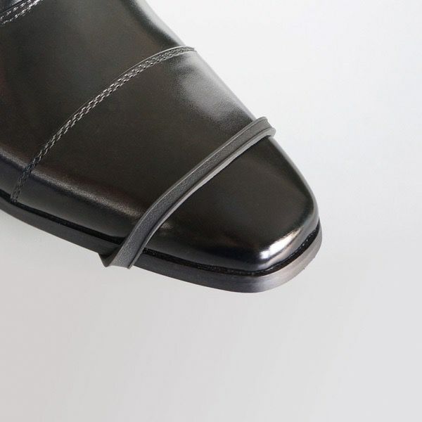 小さい輪をつま先に引っかけ、大きい輪を伸ばしてかかとに引っかけるだけ。普段履いているシューズに簡単に装着でき、見た目にもスマートです。