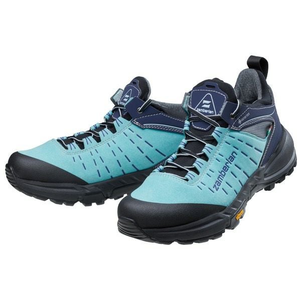 アッパーにはスエードレザー調の1.8mm厚マイクロファイバーを採用して、足運びの瞬間から軽さを感じる400g以下の軽量タイプです。 歩行時の着地衝撃を和らげるボリューム感のあるEVAミッドソールと、地面コントロール性を高めて捻じれを抑制する側面補強を担うサイドキャンパー仕様のトレッドパターンを配したヴィブラムJunko(MEGAGRIP)の組み合わせにより、抜群の安定感・クッション性・耐衝撃性を誇ります。歩行時にベロの位置ズレが起きないよう、ベロ部とアッパーの一体化構造が特長で、フィット感に優れています。