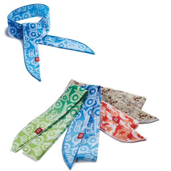 首周りに吸水ポリマーが内蔵され、水に3~5分浸すと接触体感温度が約3℃下がり、約30分間持続します。首はもちろん、頭や手首に巻くのもおすすめです。