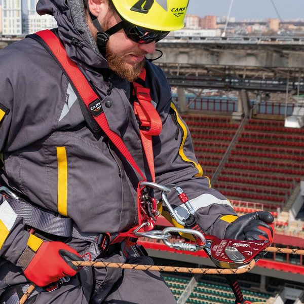 特許取得済みの内部機構は、頑丈な熱間鍛造構造と高度な人間工学を組み合わせて、高負荷(2人のシナリオでは最大250kg)でも優れたコントロール性能を実現します。ディセンダーとしての主な機能に加えて、ジャイアントはフォールアレストデバイス(ロープ間移動)として、また滑らかに登高可能なアッセンダーとして、クライミング用のビレイデバイスとして、最も幅広く使用することが認定されているロープツールです。動作レバーは、使用者が下降中にレバーに過大な圧力を加えた場合に降下をストップさせるアンチパニックシステムを搭載。作業員がデバイスをタイオフする必要がないように、レバーにロックオフポジションを備えています。カムロックボタンを使用すると、カムを開いた状態に保持することができ、荷重がかかっていない状態でもロープを簡単にスライドさせることができます。カラビナを取り外さずにロープのセットや取り外しを行うことができます(これにより、デバイスの落下を防ぐことができます)。ロープセットの経路が論理的で、かつ内部および外装のイラストによって、ロープセッティングが容易でシンプルに行えます。