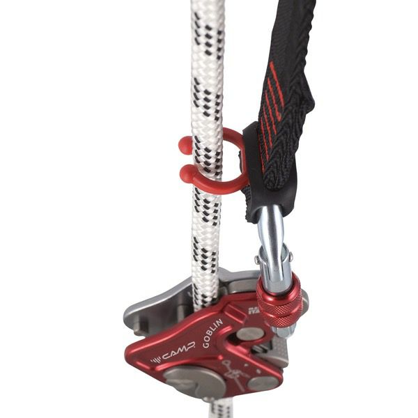 ゴブリンランヤードはユーザーとセーフティーラインを適切な距離にするためのものです。長さは2種類(26cmと40cm)。フォールアレストにゴブリンを使用する場合、ショックアブソーバーは必要ありません。ロープをロープサーファーに入れると、下降時のゴブリンの流動性が良くなります。ランヤードは2つのロッキングスティールオーバルカラビナと併用するようにデザインされ、ラバーキーパーを使用することでカラビナが固定され偶発的な回転が防げます。