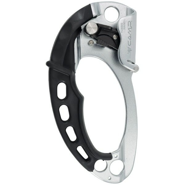 Turbohand アッセンダーは、ロープ登高時の効率を最大化することができるトップクラスのアッセンダーです。特徴的な独自のローラーにより、登高時の滑りをより滑らかにすることによってクライミングの効率を上げるだけでなく、アッセンダーの本体が、ロープとの摩擦によって生じる摩耗の危険性を低減します。人間工学に基づいたラバー製のハンドルは、両手でも持ちやすくするために本体上部まで伸ばしてあります。ハンドルとロープは、最高の操作性と効率のために同じポジションに並べられています。3つの大きなアタッチメントポイント(下に2つ、上に1つ)により最適な組み合わせが可能です。 頑丈な本体は、3.5mmアルミニウム合金で作られています。 トラバースを考慮した幾何形状です。歯付きカムには特別な耐摩耗処理が施されており、本体に開けられたドレインホールにより泥や砂が堆積するのを防ぎます。ロープ取り付け部分は、偶発的な解放を防ぐシステムにより保護されています。独自のローラーにより、最大負荷50kgの軽い荷揚げ用のロックプーリーとして、荷揚げすることもできます。 (注:この設定は、人体の確保や持ち上げには使用できません。) ハンドル下部にステンレススチールのロープガイド(Turbohand Guide、別売)を取り付けることによって長距離登高時によりスムーズに登高することが出来ます。