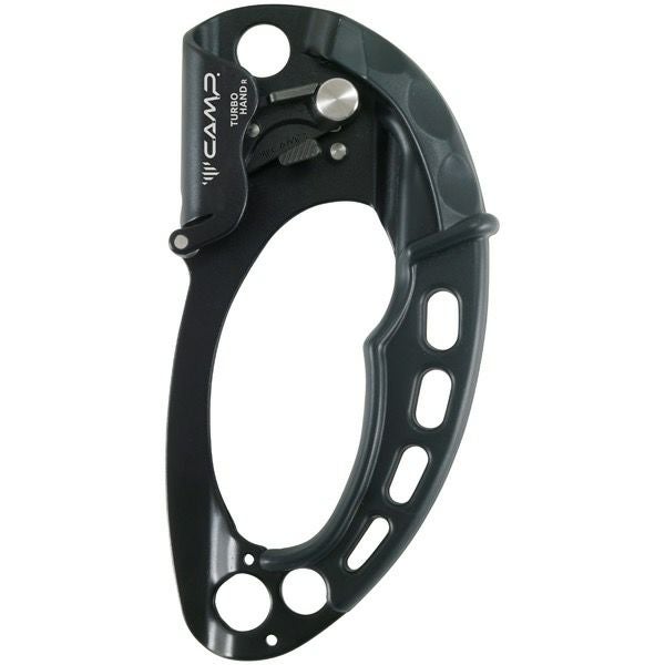 Turbohand アッセンダーは、ロープ登高時の効率を最大化することができるトップクラスのアッセンダーです。特徴的な独自のローラーにより、登高時の滑りをより滑らかにすることによってクライミングの効率を上げるだけでなく、アッセンダーの本体が、ロープとの摩擦によって生じる摩耗の危険性を低減します。人間工学に基づいたラバー製のハンドルは、両手でも持ちやすくするために本体上部まで伸ばしてあります。ハンドルとロープは、最高の操作性と効率のために同じポジションに並べられています。3つの大きなアタッチメントポイント(下に2つ、上に1つ)により最適な組み合わせが可能です。 頑丈な本体は、3.5mmアルミニウム合金で作られています。 トラバースを考慮した幾何形状です。歯付きカムには特別な耐摩耗処理が施されており、本体に開けられたドレインホールにより泥や砂が堆積するのを防ぎます。ロープ取り付け部分は、偶発的な解放を防ぐシステムにより保護されています。独自のローラーにより、最大負荷50kgの軽い荷揚げ用のロックプーリーとして、荷揚げすることもできます。 (注:この設定は、人体の確保や持ち上げには使用できません。) ハンドル下部にステンレススチールのロープガイド(Turbohand Guide、別売)を取り付けることによって長距離登高時によりスムーズに登高することが出来ます。