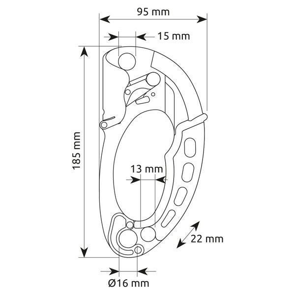 特徴的な独自のローラーにより、登高時の滑りをより滑らかにすることによってクライミングの効率を上げるだけでなく、アッセンダーの本体が、ロープとの摩擦によって生じる摩耗の危険性を低減します。 取っ手の下部分にある取外し可能なロープガイドにより、長距離の登高時にロープの流れをスムーズにします。人間工学に基づいたラバー製のハンドルは、両手でも持ちやすくするために本体上部まで伸ばしてあります。 ハンドルとロープは、最高の操作性と効率のために同じポジションに並べられています。 3つの大きなアタッチメントポイント(下に2つ、上に1つ)により最適な組み合わせが可能です。 ステンレススチール製のロープガイドは、摩耗に対する耐性を高め、主アタッチメントポイントをガードします。それにより、カラビナがロープに干渉するのを防ぎます。頑丈な本体は、3.5mmアルミニウム合金で作られています。 トラバースを考慮した幾何形状です。スパイク付きカムには特別な耐摩耗処理が施されており、本体に開けられたドレインホールにより泥や砂が堆積するのを防ぎます。 ロープ取り付け部分は、偶発的な解放を防ぐシステムにより保護されています。独自のローラーにより、最大負荷50kgの軽い荷揚げ用のロックプーリーとして、荷揚げすることもできます。 注:この設定は、人体の確保や持ち上げには使用できません。