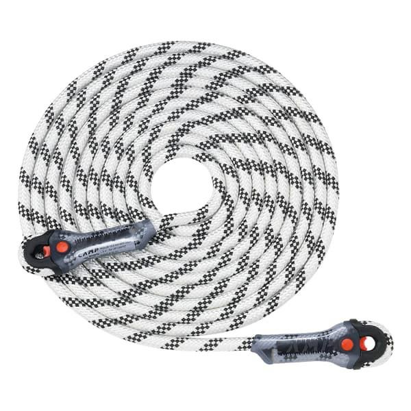 両端に22kNのステッチが施された固定ループを取り付けたそれぞれの長さのイリジウム10.5mmセミスタティックロープ。ロープループとステッチのプロテクトシステムは、信じられないほどコンパクトで頑丈です。ループには カラビナの回転防止用ゴムが付けられています。ループ付きロープのメリットは、ノットによる強度低下が無いこと(ループの強度は22kN)、ノット作成ミスによるトラブルが発生しないこと、作業時間短縮などが挙げられます。