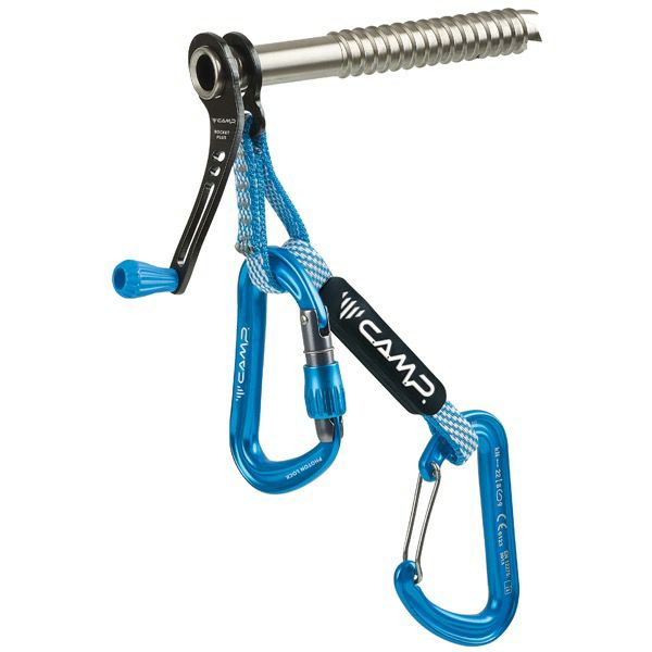 ロケットプラスは、取り付けられたダイニーマスリングにカラビナ1点を使用することで、クイックドローを使う必要がありません。 「ナノ22」または「フォトンワイヤー」カラビナを使用すると、世界で最も軽いアイススクリューの1つになります。ギアラックに掛かった状態でロープをクリップし、そこから氷へセットすることも可能です。ダイニーマスリングは2つのループが組み合わされた形状になっていて、上部のループはギアラックへのラッキングとアンカー構築の際に使用でき、下部のループはカラビナが事前に装備されるように設計されています。 クロモリ鋼の構造は、軽量かつ丈夫で耐久性があります。特許取得済みの前歯は、極低温で堅い氷にも素早いセットができるように設計されています。リバースアングルスレッドは、スムーズな駆動と最大の保持力を保証します。 EN 568認定