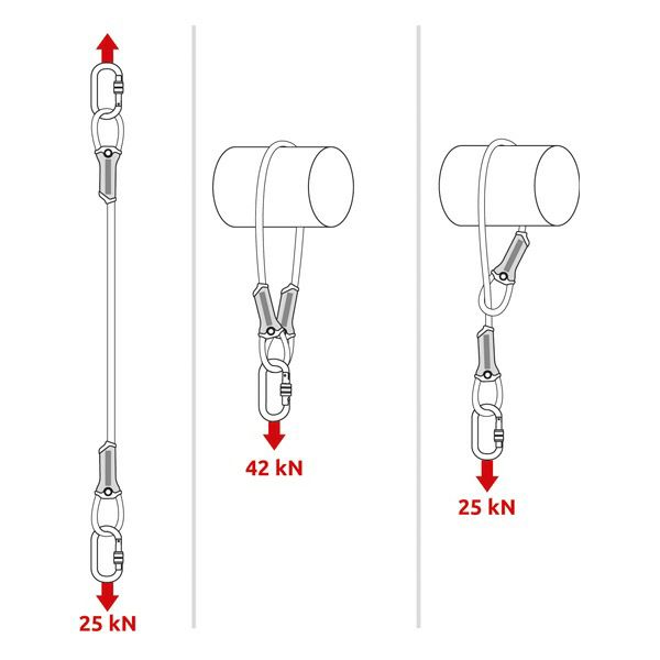 EN 354ランヤード、EN 355ショックアブソーバーと組み合わせて、より高い耐切断性のフォールアレストランヤード(最大 2 m)を構成することが出来ます。