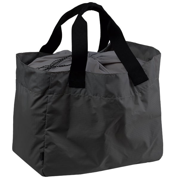 口の部分は巾着仕様で中の物の汚れ防止や中身を見せたくない場合に役立ちます。ハイカットシューズも収納できる余裕のある大きさ、ロープなどを入れての移動にも便利です。