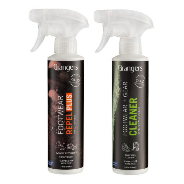 フットウェア ギア クリーナー 275mLボトルと、フットウェア リペル プラス 275mLボトルを組み合わせた、ギア専用クリーナー&フットウェア撥水剤ボトルセット・パッケージです。