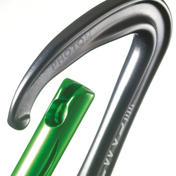 世界最軽量のフルサイズキーロックカラビナPhotonが、重量を増やさず強度を向上させました。軽量ながら操作性にも優れます。スリムなノーズ形状はゲートとのスペースが最小限に抑えられ、安全性も向上しました。