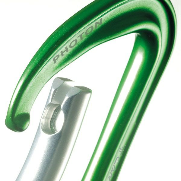 世界最軽量のフルサイズキーロックカラビナPhotonが、重量を増やさず強度を向上させました。軽量ながら操作性にも優れます。スリムなノーズ形状はゲートとのスペースが最小限に抑えられ、安全性も向上しました。