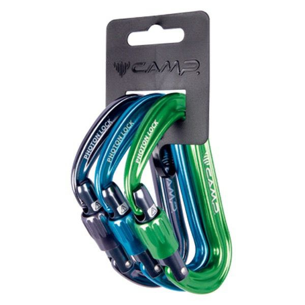 世界最軽量クラス、フルサイズキーロックカラビナPhotonのスクリューロックモデル。 わずが43gのロッキングカラビナです。 1パック3色セットです。