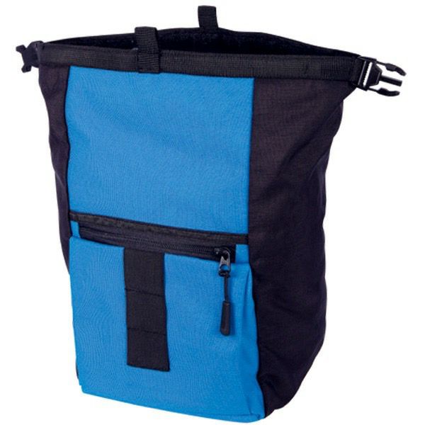 丈夫で耐久性のあるリップストップ素材を使用。バックルとベルクロで開閉するロールトップ式で持ち運び時の運搬中のチョーク漏れを防止。貴重品やアクセサリーの収納に便利な伸縮性のある外ポケットが2ヵ所ついています。