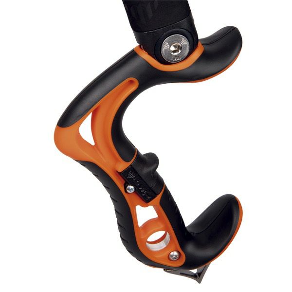 シャフトとハンドルの接続部はアイス・モードとミックス・モードの間でハンドルを回転させることができアイス・モードでは角度が48°と100°になり最小限の力で自然にスイングでき刺しこむことができます。ドライ・モードではアングルが60°と105°になりクローズドな形状で下方向へのグリップを高め超急傾斜での操作性を実現します。ピックとアクセサリーの組み合わせを変えることで様々なコンディションに適したバランスを得ることができます。