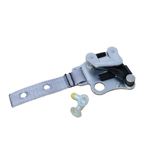 スパイクでのクライミングとロープクライミングテクニックの両方が必要な場合に有効です。ターボスパイクはCAMP社のターボフットをベースにしており、クライミングスパイクへの取り付け専用となっています。シャフトおよびスパイクに本体に接続されたストラップをネジで固定するので、恒久的に取り付けたままにすることができます。ロープは登高時もデバイスを通って真下に下がり、スパイクには干渉しません。革新的で特許取得済みのステンレススチール製ローラーが摩擦を最小限に抑え、登高の際の効率を高めます。カムのクリーニングホールにより、凍ったり汚れたロープでもターボスパイクが機能します。8~13 mm_のロープ用。ターボスパイクはPPE(個人用保護具)ではありません。