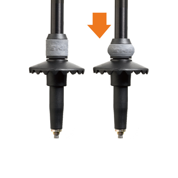 ウォーキング時にバスケットが邪魔にならないよう、最小サイズの取外し可能バスケットと組み合わせた先端チップです。