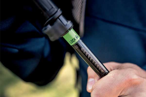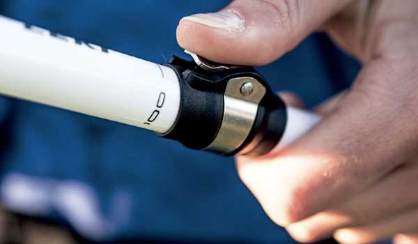ワンタッチ動作でスピーディにロックの解放、固定が可能。テコの原理で親指の力だけで操作できるため、簡単にポールの長さ調整ができるLEKI独自のロックシステムです。