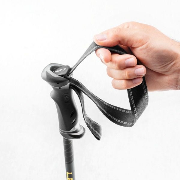 LEKIトレッキングポールには速乾性に優れたポリエステルのストラップを採用しています。薄くてしなやかなスキンストラップは、手にしっくりとなじみ、素手でも違和感なく握れます。
