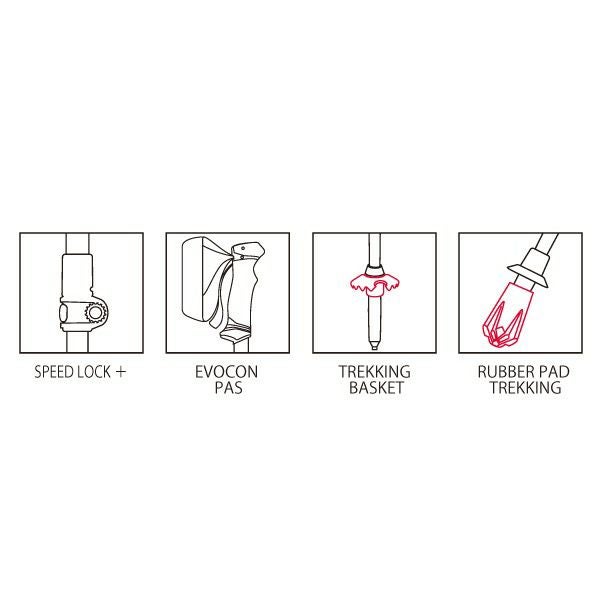 下りのときでもグリップヘッドが握りやすいラウンドトップ形状の『エボコン ソフトグリップ』と単色スキンストラップを採用し、アンチショックシステムを省いてコストパフォーマンスを高めたモデルです。上中段のスピードロック・プラスシステムが、スピーディな長さ調整を可能にしています。