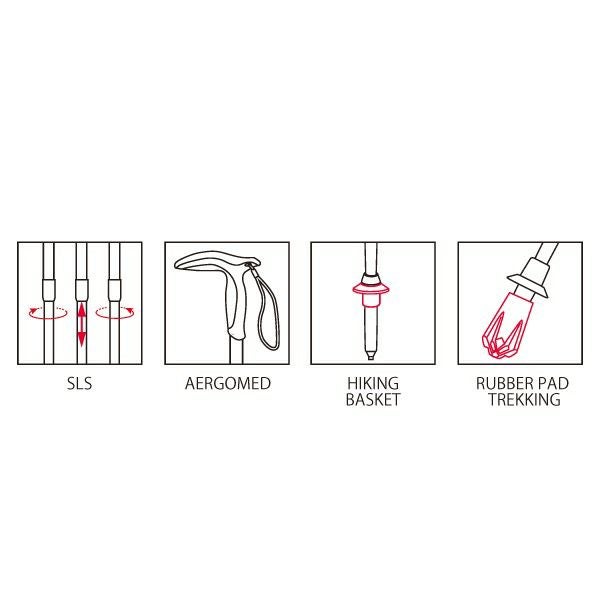 全長が短く、アップダウンのない平坦な場所を歩くのに向いています。 上中段にスーパーロックシステムを採用しています。 Hiking Model ハイキングモデル(ステッキタイプ)