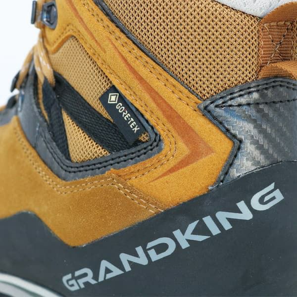 かかとのホールドと甲から履き口にかけてのフィッティング感をさらに向上させた、無雪期縦走などに適したモデルです。甲部分にはテープシューレーシングを採用し、それぞれが独立した構造パターンで屈曲時の柔軟性を確保。テープシューレーシングの負荷ストレスを無くして軽快な歩行を可能にしています。足首の柔軟な動きを妨げないカッティングデザインで、しっかりとしたホールド感があるのに自由度の高い履き心地を実現しました。岩肌や木々の枝などが当たりやすい外面側には1.6mmスエードレザーを配置し、耐久性と堅牢性を高めています。つま先はもちろんのこと側面からかかとまでを覆うランドラバーによって、靴全体の剛性を高め歩行時の安定感と安全性に優れた仕様です。アウトソールはグリップ力と耐久性にすぐれたヴィブラム【XS TREK】TSAVOソール、ライニングにはクッション性のある【ゴアテックス・メンブレン】を採用。フレックスは柔らかめのミッドフレームで、より軽く、よりソフトな仕上がりとなっています。