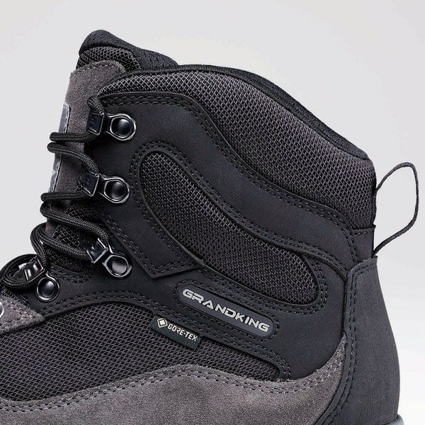 多くの登山愛好家からも支持されていた『GK8X』のアップグレードさせたハイパフォーマンスモデル。デザインや基本スペックはそのままに、アウトソールに使用されている【キャラバントレックソール】をリニューアル。コンパウンド比率を変更しグリップ力とフリクション性を格段に向上させました。粘りのあるアウトソールが地面の細かな凹凸をも捉え、抜群のグリップ力性能を発揮します。シューレースはフィッティング操作に優れる丸紐タイプを採用、甲部分に配置されたフックの1つをストッパー機能付きにすることで、締め込み動作時の緩みを抑制します。日本人の足形に合うように成型された立体ヒールカップをかかと部に内蔵することで、歩行時のかかと位置を安定させ、かかと浮きやズレを防ぎながら、しっかりとホールドし続けます。