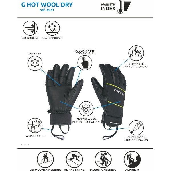 DRYZONE®防水透湿メンブレンをライニングに使用。メリノウールとポリエステル混紡インサレーションを採用した、とても保温性の高いオールマウンテングローブです。指の形状は手に馴染みやすく、優れたグリップ力と操作性を実現しています。