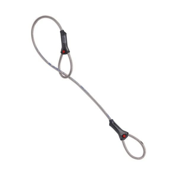 保護用プラスチックチューブカバー (直径10 mm) 付きの亜鉛メッキ炭素鋼製。2つの大きなループには同じサイズの開口部があり、簡単に取り付けたりクリップしたりできます。ループは強力なアルミのカシメで閉じられており、薄型で検品しやすい独自の透明保護シースが特徴です。ループは互いに簡単に通すことができ、複数の設置の仕方をを可能にします。