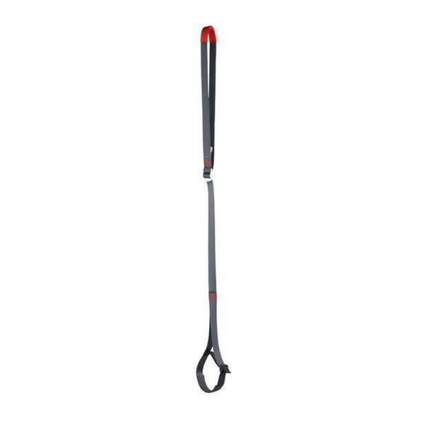 ロープアッセントに使用するフットループ。スティールバックルにより、95~150cmまでの素早い調整が可能。足を載せるテープ部分とアタッチメントポイントは補強されています。