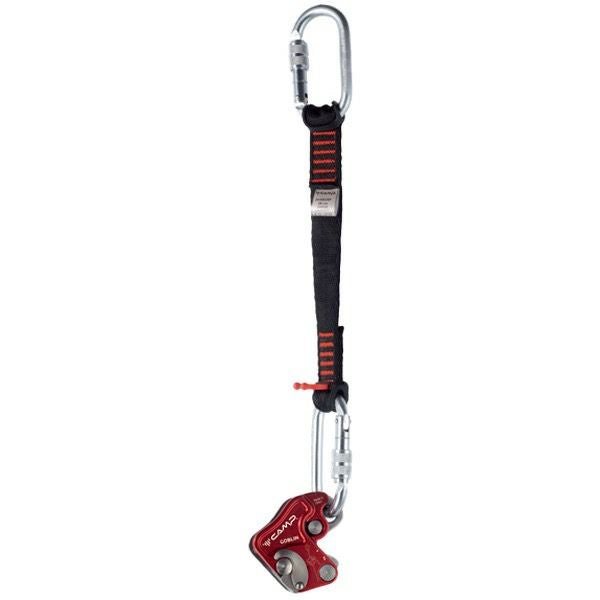ゴブリンフォールアレスターに、ゴブリンランヤード26cmとスチール製カラビナ2個が付属したキット (組み立てられていません)。