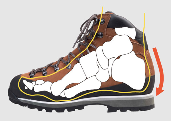 重たい荷物を背負って登山道を歩くときに最適な剛性を持つインソールボードです。数日にわたる登山でも足をしっかりサポートします。