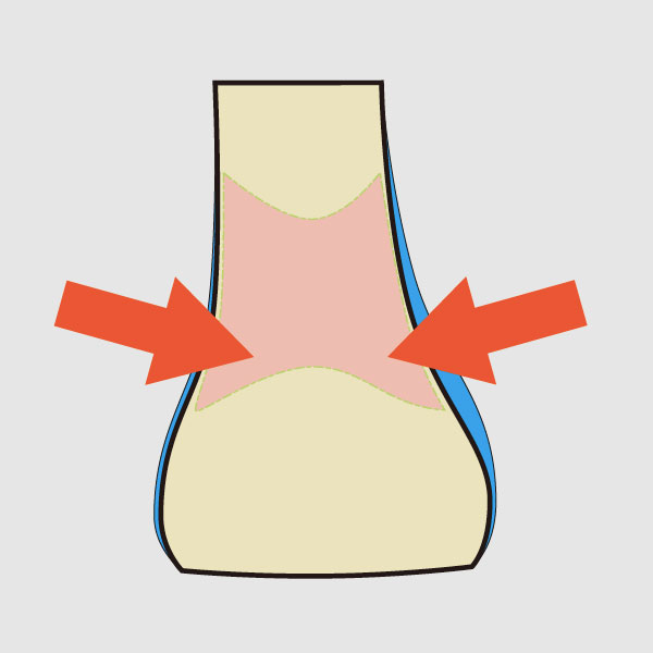 甲部を削り込みフィット性を高めています