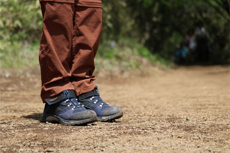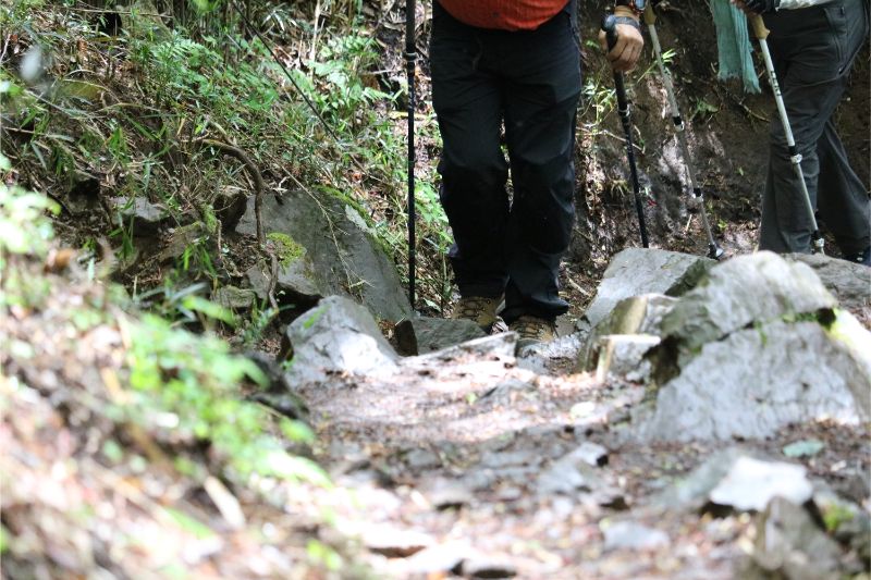 疲労が溜まってくると思わぬところでバランスを崩して捻挫する事もあるので、足首を支えるミドルカット以上の登山靴がお薦めです。