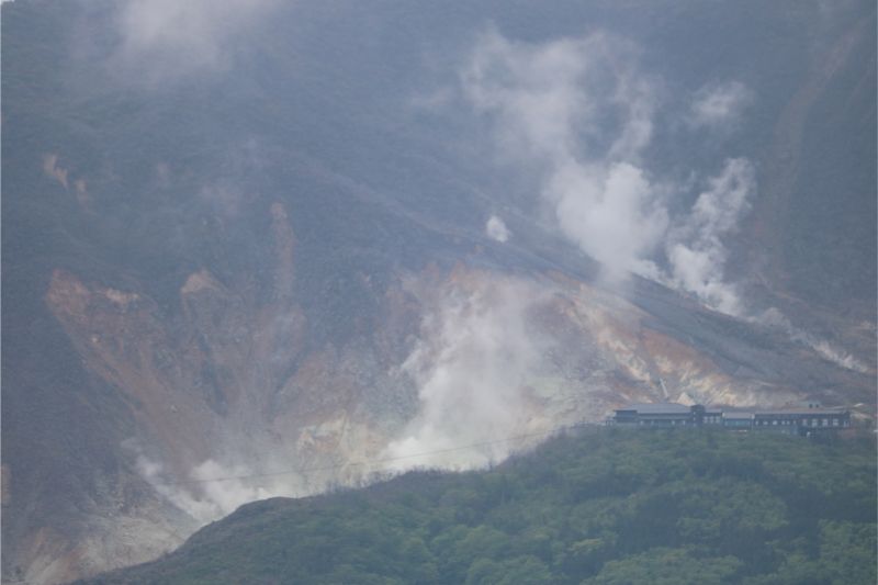 金時山の山頂に向かう途中からは、箱根の大涌谷が向かい側に見えています。後から知った事ですが、実はこの時、大涌谷では火山活動が活発化してきていたようでこの写真を撮影した半日後に再び警戒区域としての規制がかかりました。