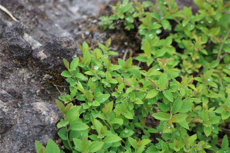 昨日まで降った雨をそっと乗せて、水玉を蓄えていました。足元以外に目を凝らせば、普段とは少し違う山登りの楽しさを見つけられるかもしれません。