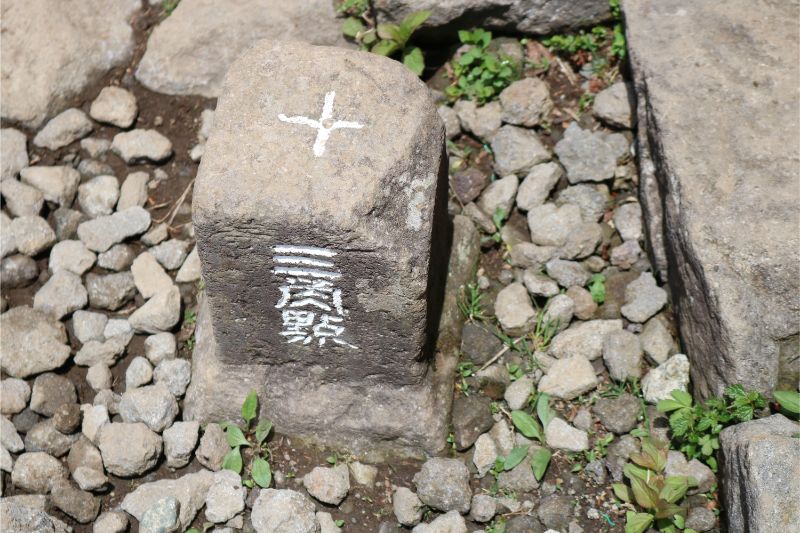 金時山山頂をドドンとアピールしている場所から少し離れたところに、誰にも気に留められず小さく三角点標柱が記されていました。