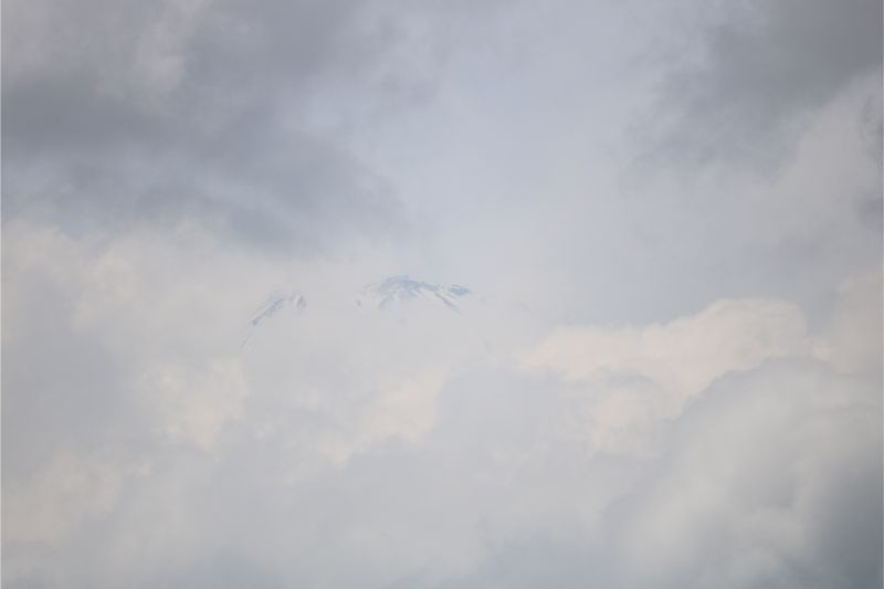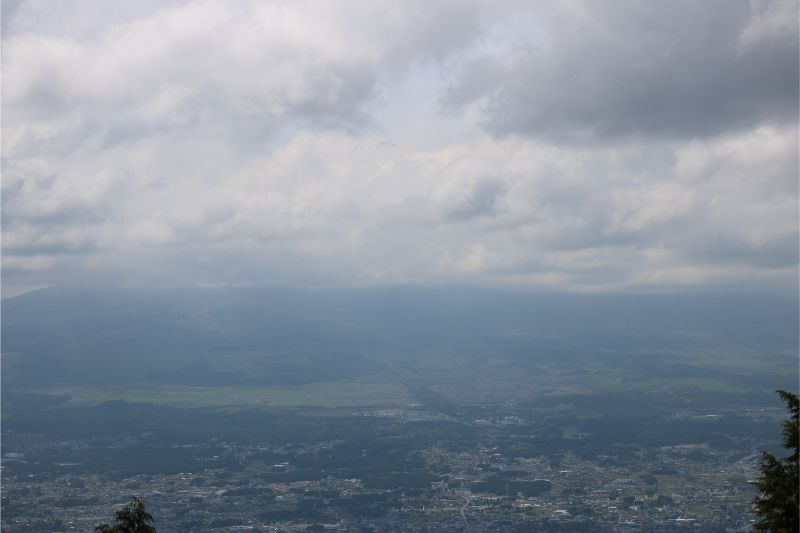 乙女峠からは天気が良ければ正面に富士山が望めます。この時は残念ながら厚い雲に覆われて富士山は見えず。。。でもほんの少しだけ残雪が残る富士山頂を望遠レンズでは確認することが出来ました。肉眼では雲と一体化してしまって分からなかったみたいですが。
