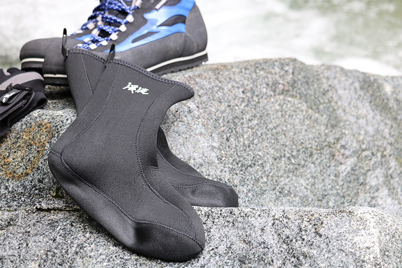 【渓流グローブ】や【渓流ソックス&スパッツ】も同じ素材で作られています。水の冷たさから身を守る必須アイテムが、これらの渓流アクセサリー・シリーズとなります。