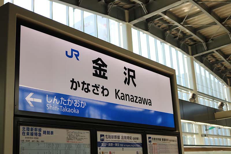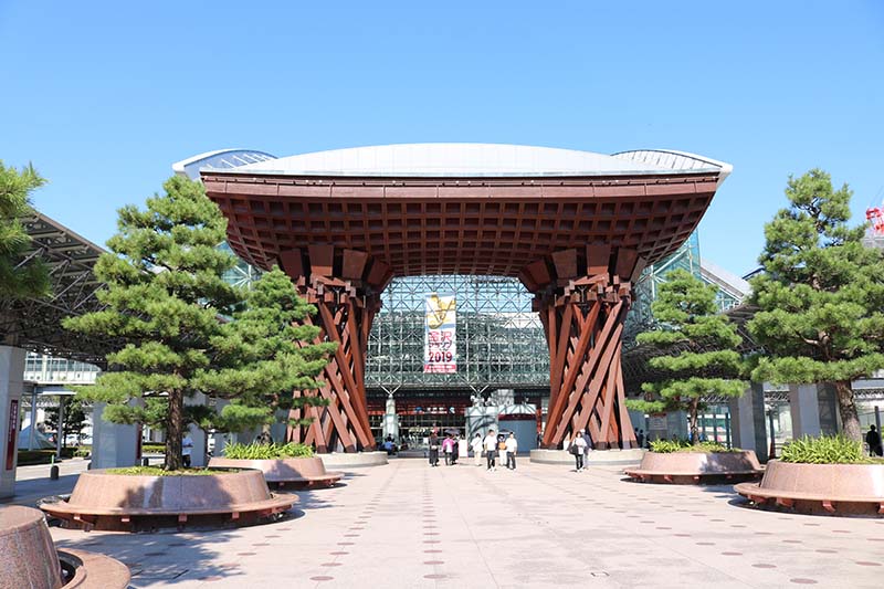 当日は東京駅、大阪駅からそれぞれ指定の列車に乗って金沢駅に集合するため、一足先に始発で金沢駅に到着。金沢駅を象徴する『鼓門』をじっくり眺めてプチ観光気分を堪能しつつ、皆さんの到着をお待ちしていました。(ついでにお土産の下見まで済ませて)