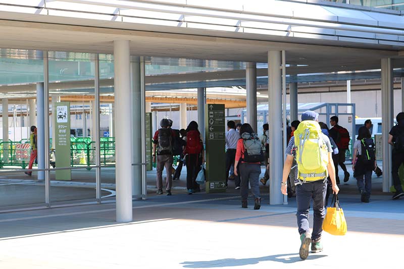 大阪組・東京組をそれぞれお出迎えした後、バスに乗車する前に駅前広場で冒頭のあいさつと共に今回のご招待ツアー趣旨などをご説明。3日間行動を共にするスタッフ紹介をおこないました。