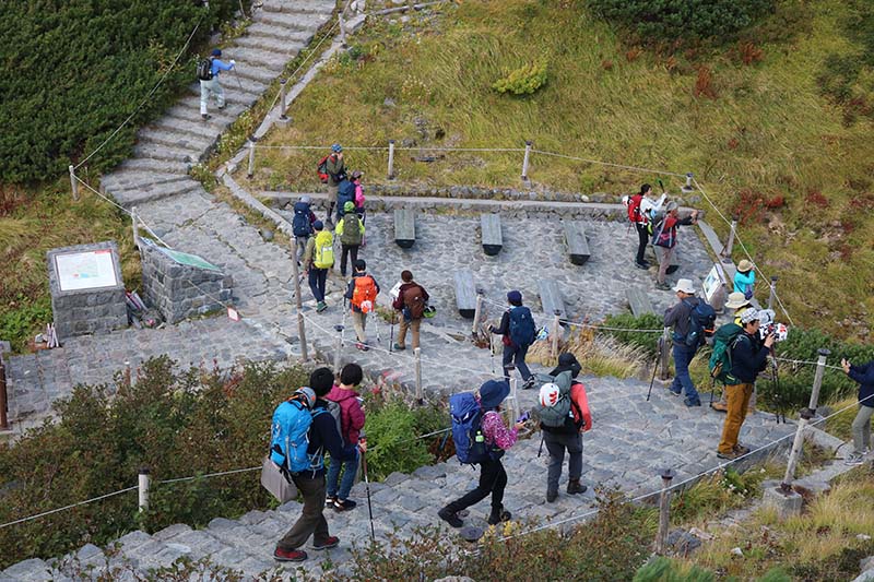 ここも歩道がキレイに整備されているので散策気分で歩けてしまいますが、アスファルト舗装路とは違うのでやっぱり登山靴での歩行が安心です。