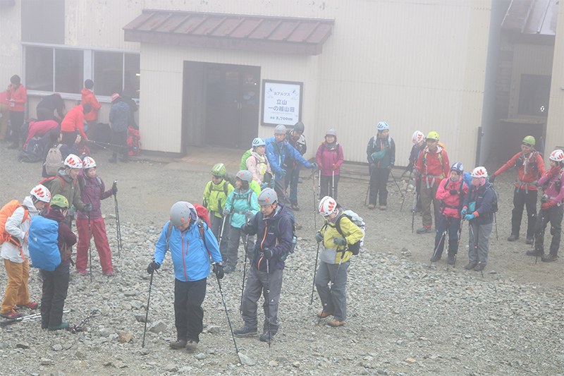 さあ本日は一の越から立山雄山そして大汝山を目指します。いつ降り出してもおかしくない空模様に、ちょっぴりテンションも下がり気味。